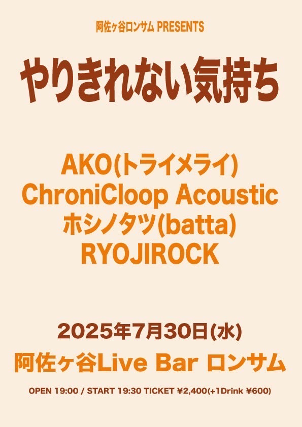 TITLE 阿佐ヶ谷ロンサム presents 『やりきれない気持ち』