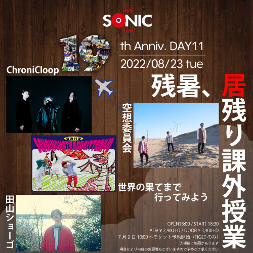 | TITLE | club SONIC mito 19th Anniv. DAY 11 残暑、居残り課外授業 |